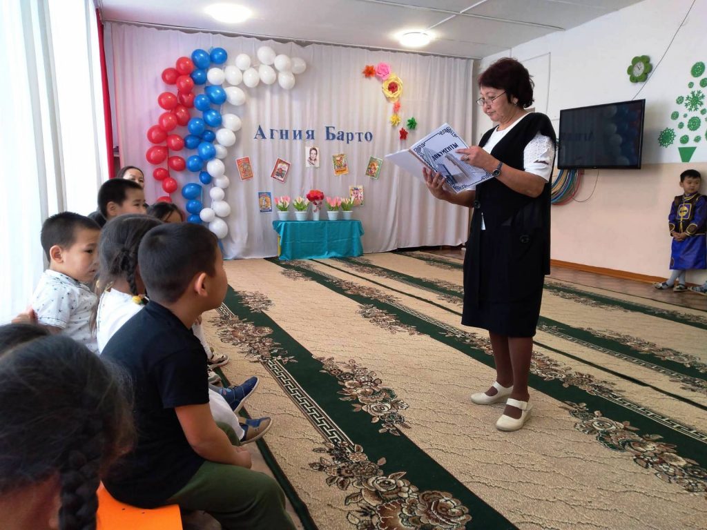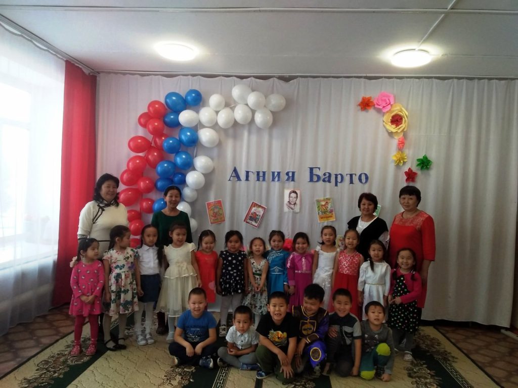 03.02.2021 г.в МБДОУ д/с «Салгал»с Барлык провели мероприятие, посвященное к Юбилею Агнии Барто с целью знакомства детей с творчеством А. Л. Барто. Задачи: познакомить детей с поэзией А. Барто; формировать у дошкольников навык выразительного чтения и артистические умения; воспитывать положительное эмоциональное отношение к литературным поэтическим произведениям.